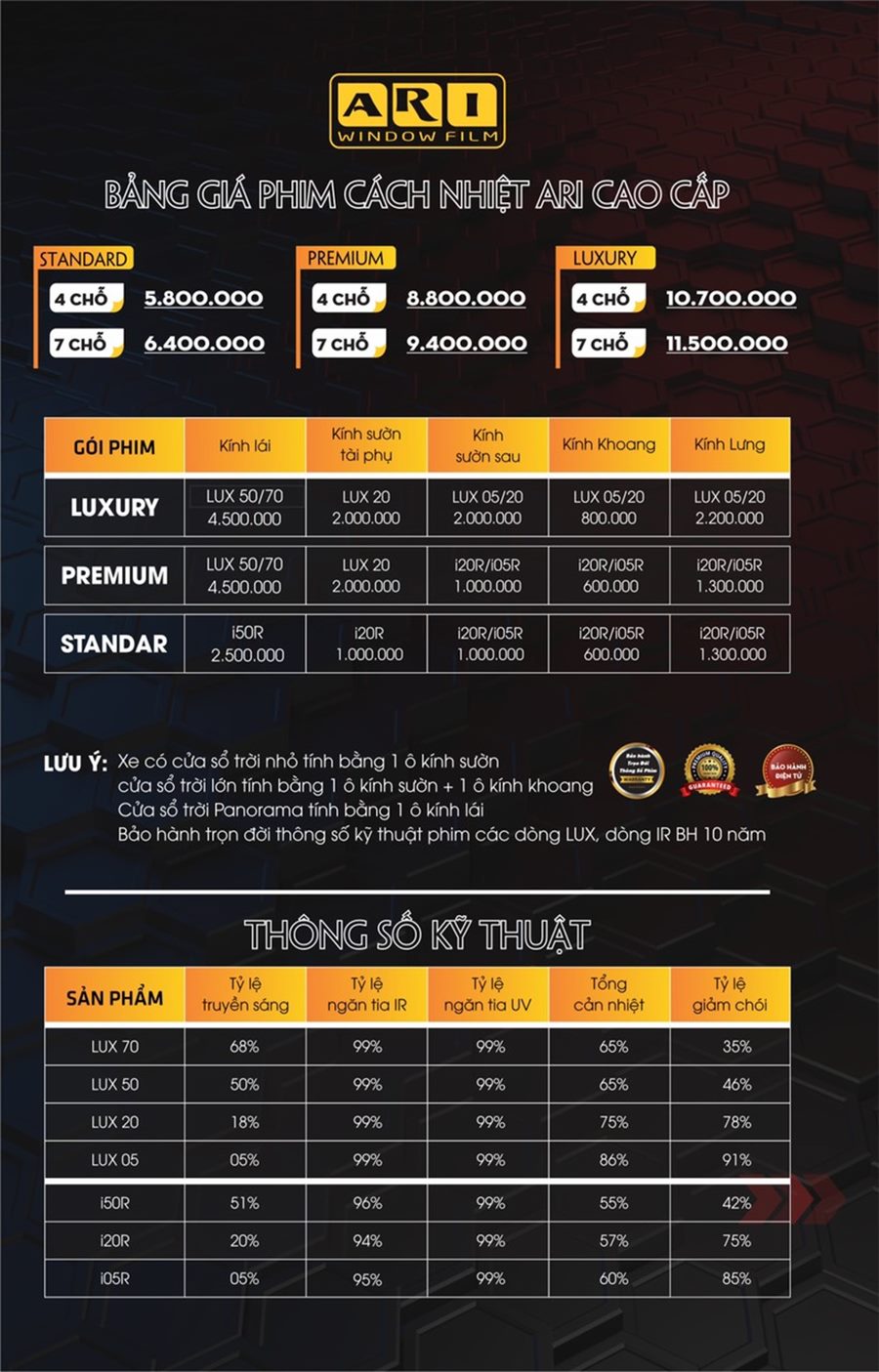 Giá dán phim cách nhiệt ô tô thương hiệu ARI cho xe